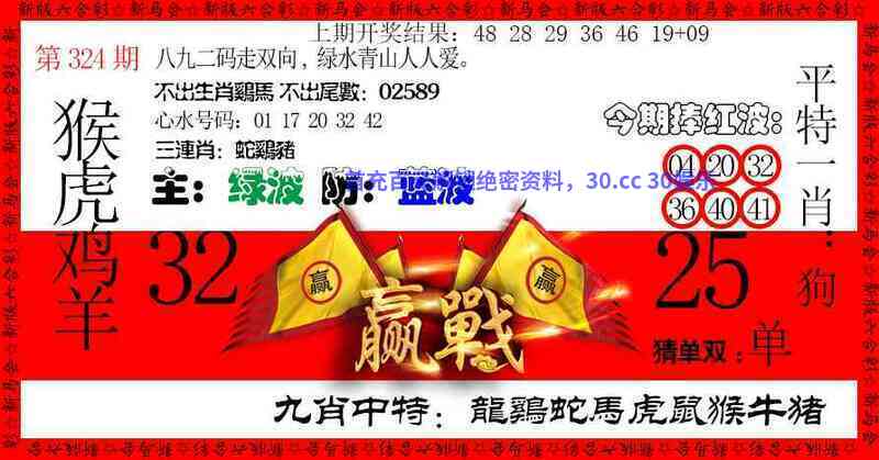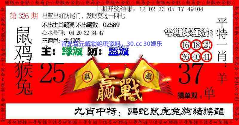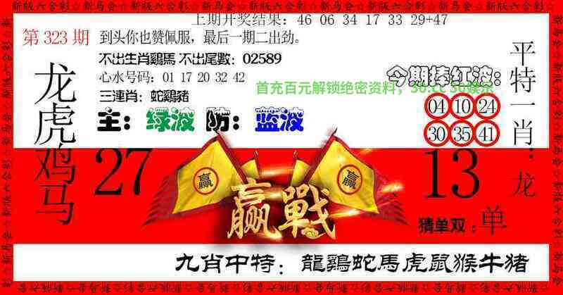 325期:九肖【鸡龙牛马鼠猪兔猴】开:虎04中
